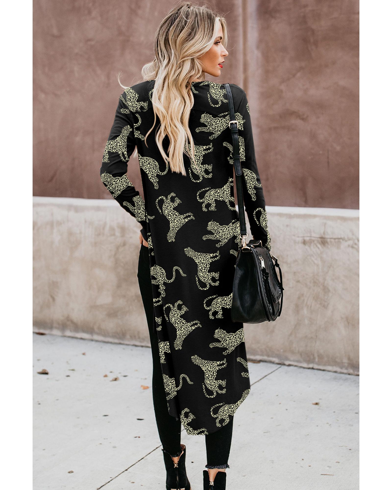 Black Printed Animal Print Ribbed Knit Cardigan – L