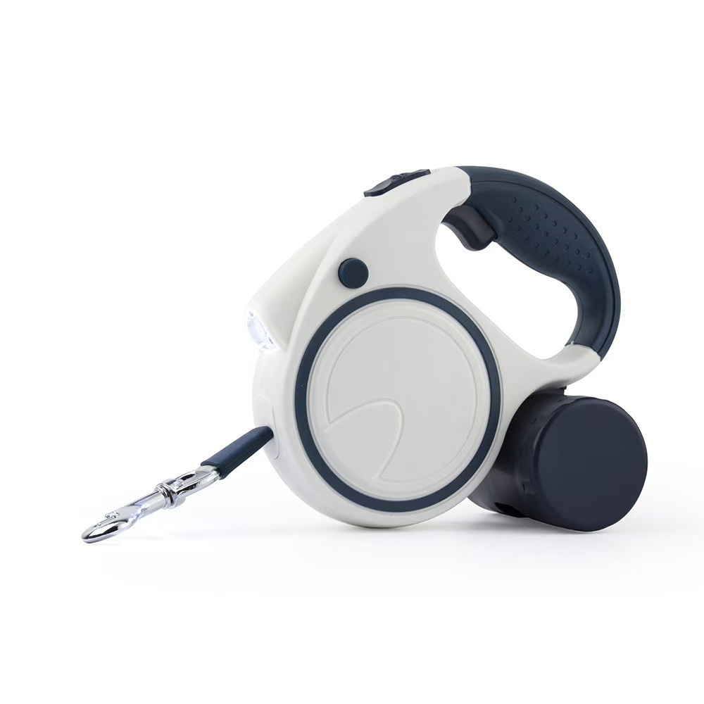 Blue and White 3M Retractable Dog Leash – Built-in LED Light (No Batteries) and Bag Holder