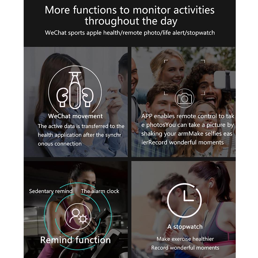 • Health monitoring: real-time heart rate measurement, blood pressure measurement, blood oxygen measurement