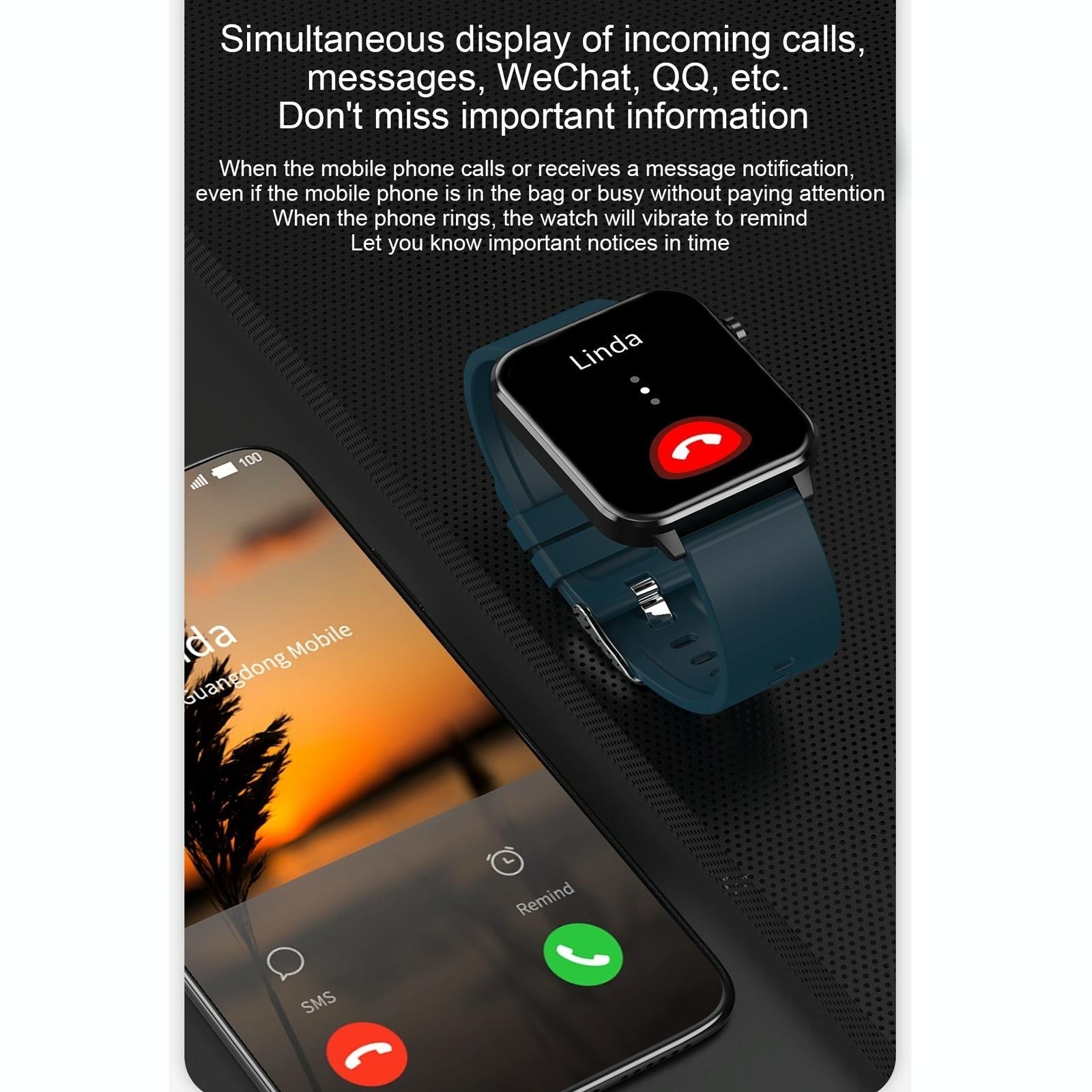 1.7 Inch Tft Colour Screen Ip68 Waterproof Smart Watch Support Blood Oxygen Monitoring / Body Temperature Monitoring / Ai Medical Diagnosis – Leather Strap – Black