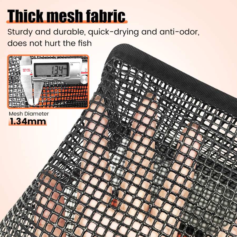 - Durable Coated Nylon Mesh: Constructed from thick, high-quality coated nylon mesh (mesh diameter approx. 1.34mm) that is sturdy, wear-resistant, and designed to be gentle on fish, preventing unnecessary harm.