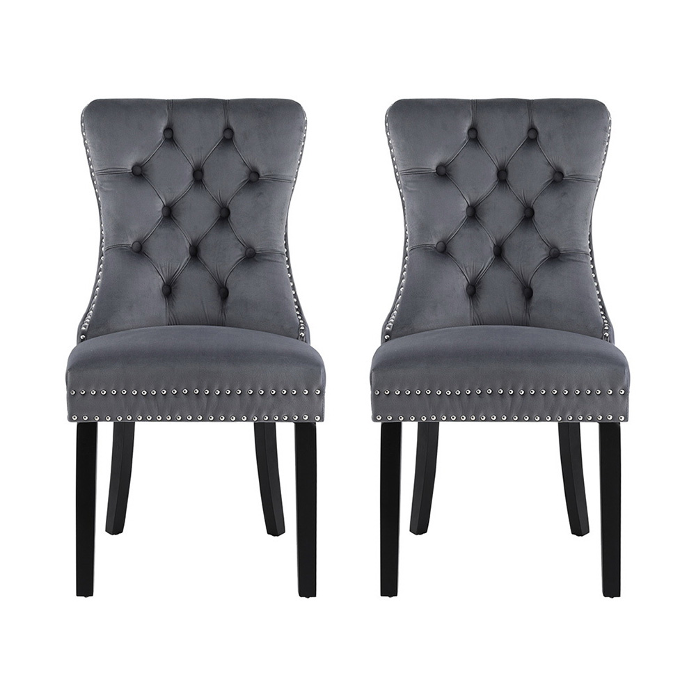 Elevate your dining space with this set of 2 Artiss Dining Chairs, designed to bring timeless charm to your home. Upholstered in your choice of PU leather or plush velvet, the chairs feature a button-tufted backrest and rivet edging for a sophisticated look. Crafted with a cushioned backrest filled with high-resilience foam, these chairs provide exceptional comfort during meals and gatherings. The rubberwood legs ensure reliable support, while anti-slip feet protect your floors. Perfectly blending style and practicality, these dining chairs make a stunning addition to any dining room.
