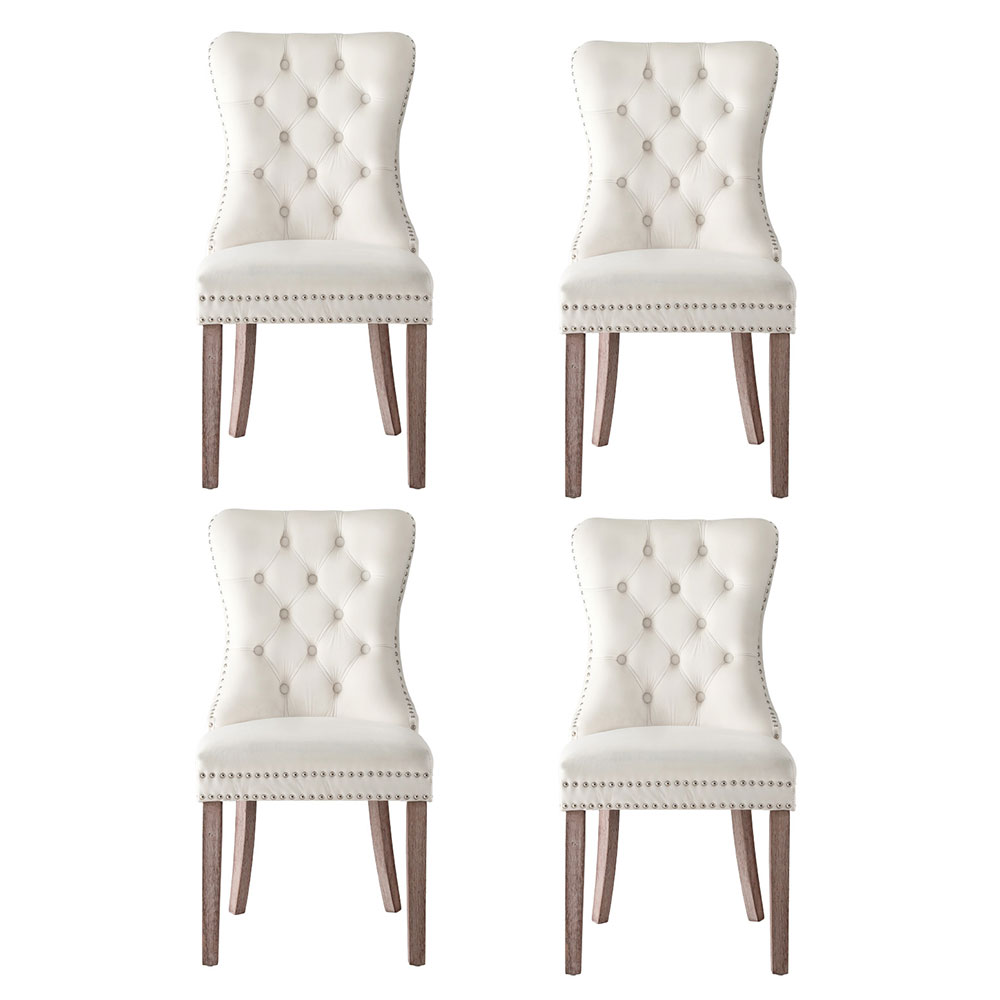 Elevate your dining space with this set of 4 Artiss Dining Chairs, designed to bring timeless charm to your home. Upholstered in your choice of PU leather or plush velvet, the chairs feature a button-tufted backrest and rivet edging for a sophisticated look. Crafted with a cushioned backrest filled with high-resilience foam, these chairs provide exceptional comfort during meals and gatherings. The rubberwood legs ensure reliable support, while anti-slip feet protect your floors. Perfectly blending style and practicality, these dining chairs make a stunning addition to any dining room.