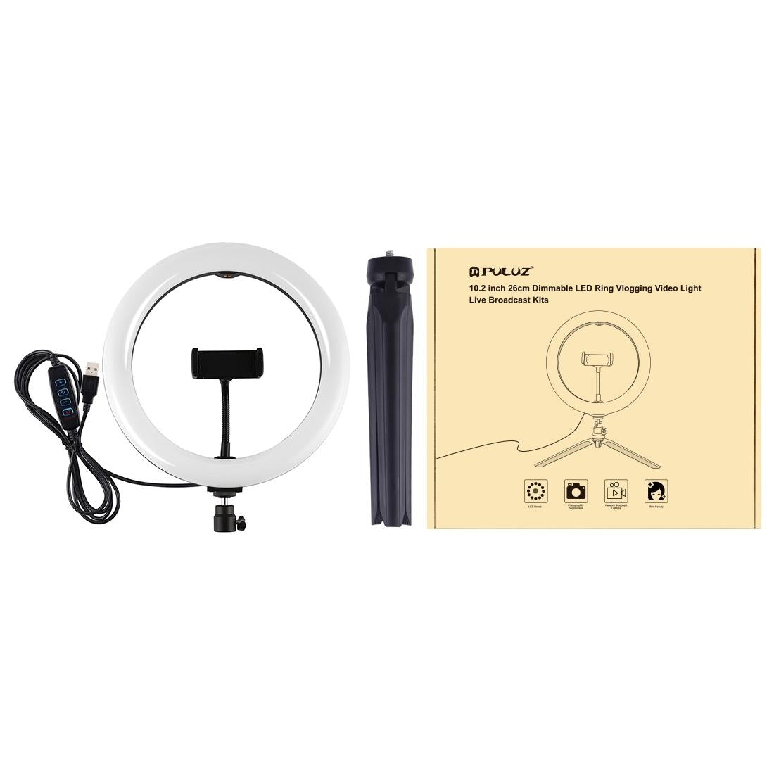 • 1 x 10.2 Inch 26Cm Selfie Beauty Light Desktop Tripod Mount Usb 3 Modes Dimmable Led Ring Vlogging Selfie Photography Video Lights With Cold Shoe Tripod Ball Head Phone Clamp