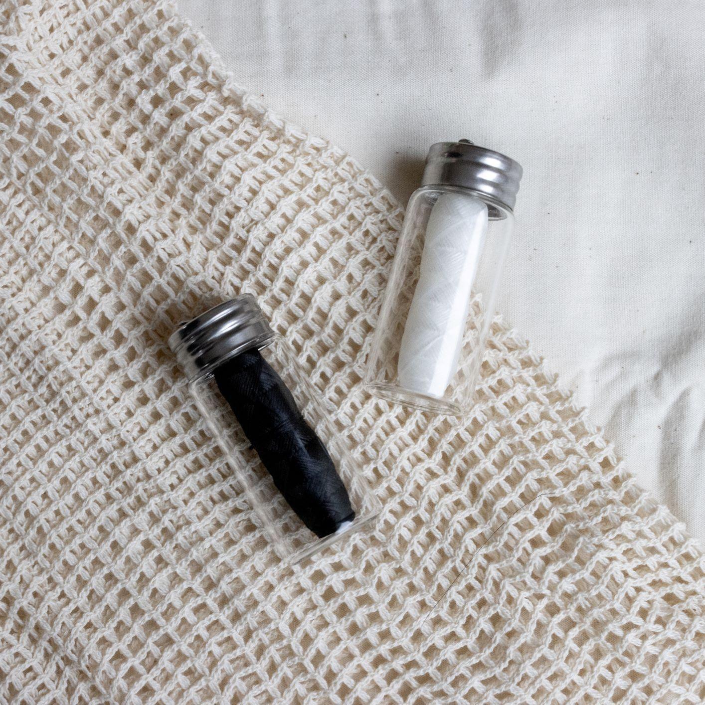 Our eco-friendly, vegan, biodegradable dental floss comes in rolls of 30 metres. They can be purchased as a ‘twin pack’ with one bamboo charcoal and one cornstarch mint. Alternatively,just order a single!