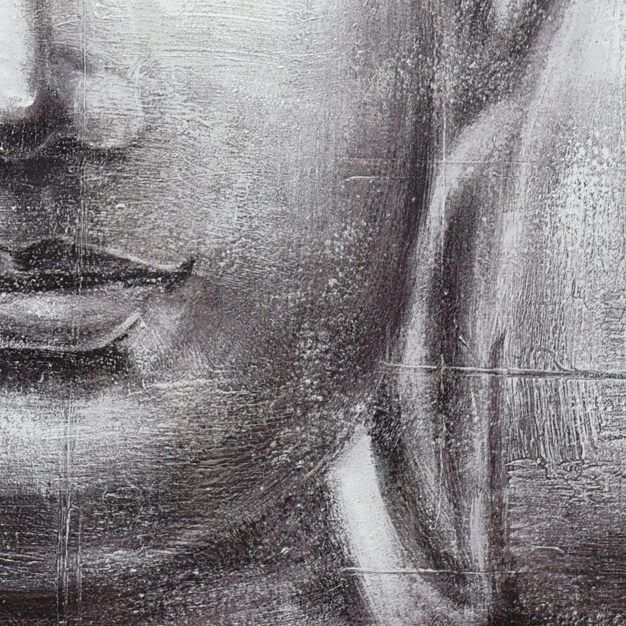 “Ethereal Enlightenment” is a captivating exploration of spiritual depth and tranquility. Dominating the canvas is the visage of Buddha, rendered in mesmerizing shades of grey and charcoal. The closed eyes evoke a sense of profound introspection and serenity, guiding viewers into a state of meditative reflection. What adds an ethereal touch to this otherwise muted palette are the delicate gold highlights, gracing the head and the bindhi (urna), symbolizing the third eye’s awakened state. Every brushstroke, every gradient, is meticulously crafted, marrying hand-painted artistry with printed precision. Encased in a champagne-hued frame, the artwork exudes a sense of opulence and reverence. “Ethereal Enlightenment” stands not merely as a visual treat but as a gateway to inner peace and spiritual contemplation.