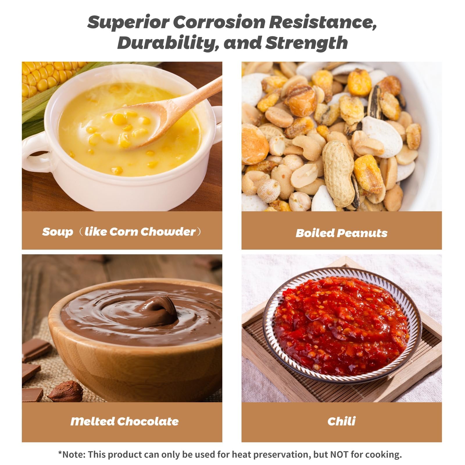 This soup warmer features a unique three-dimensional constant temperature design with water insulation technology. It efficiently retains heat, keeping your soups and foods at the right temperature for longer. *Insulation-only, not for heating.