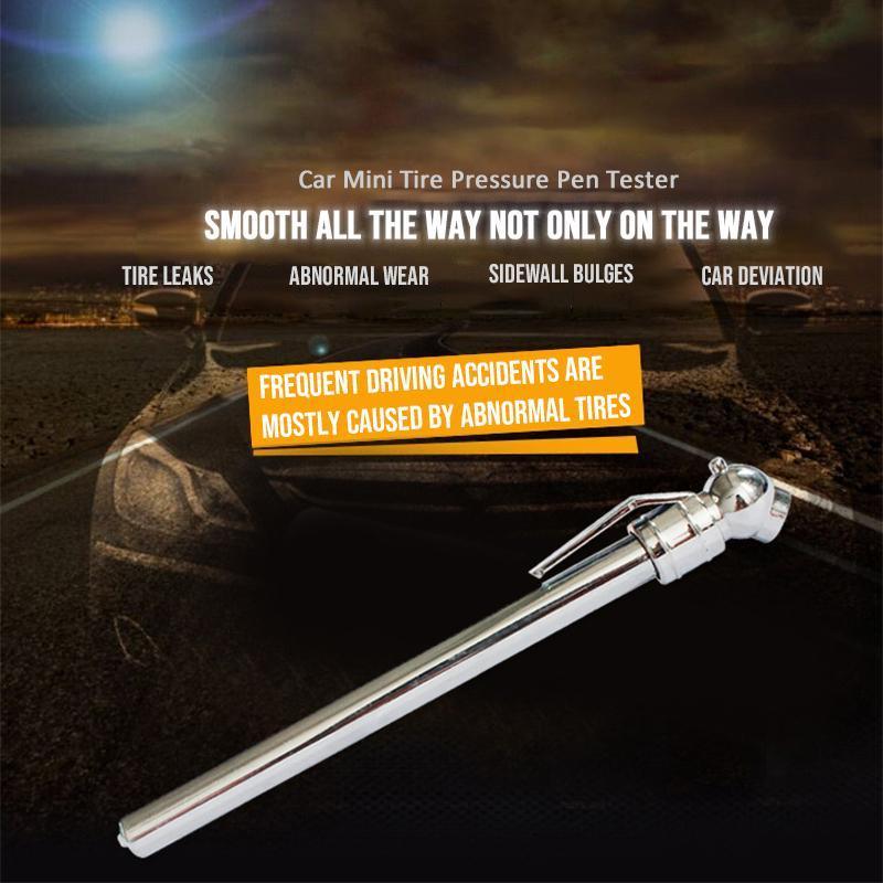 14cm Stainless Steel Pencil Tyre Pressure Gauge 5-50 PSI Manual Tester