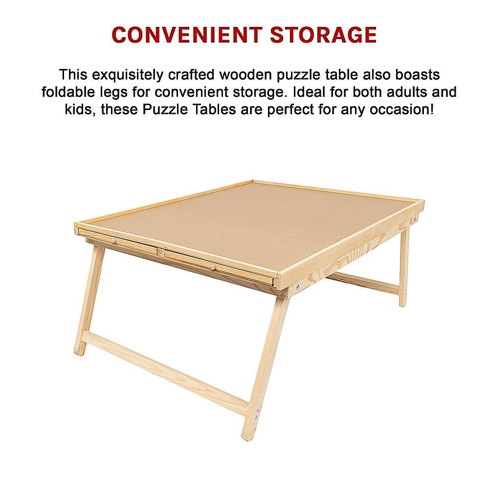 This exquisitely crafted wooden puzzle table also boasts foldable legs for convenient storage. Ideal for both adults and kids, these Puzzle Tables are perfect for any occasion!