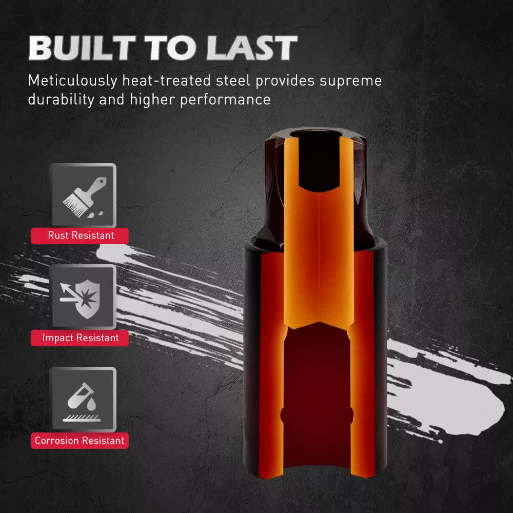 DURABLE DESIGN – Drop-forged and heat-treated S2 steel bits with hardened Cr-V steel sockets, ensuring long-lasting performance. Ideal for high-torque applications in garages, workshops, and repair tasks.