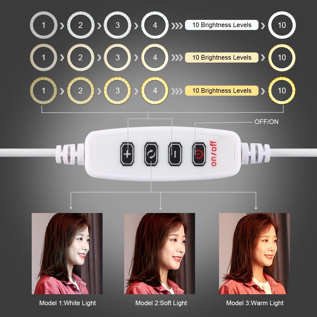 • 1 x 16Cm Usb 3 Modes Dimmable Led Ring Vlogging Photography Video Lights With Tripod Ball Head
