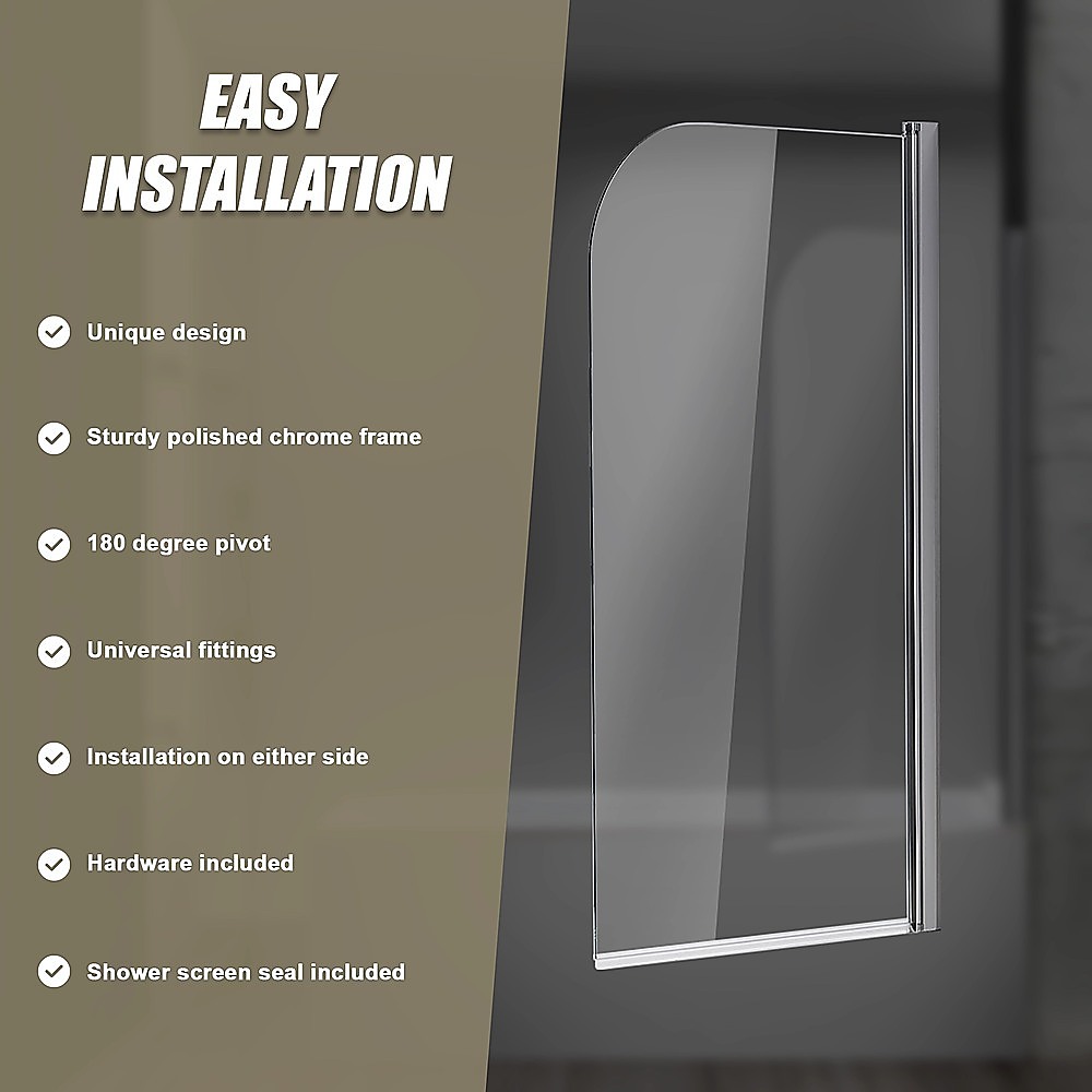 The pivot shower door is easy to install. The handy universal fittings allowing installation on the right or left side of your bath.