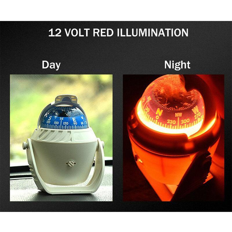 1Pc Boat Compass with Built In Light White 65mm Pivoting Card for Marine Use