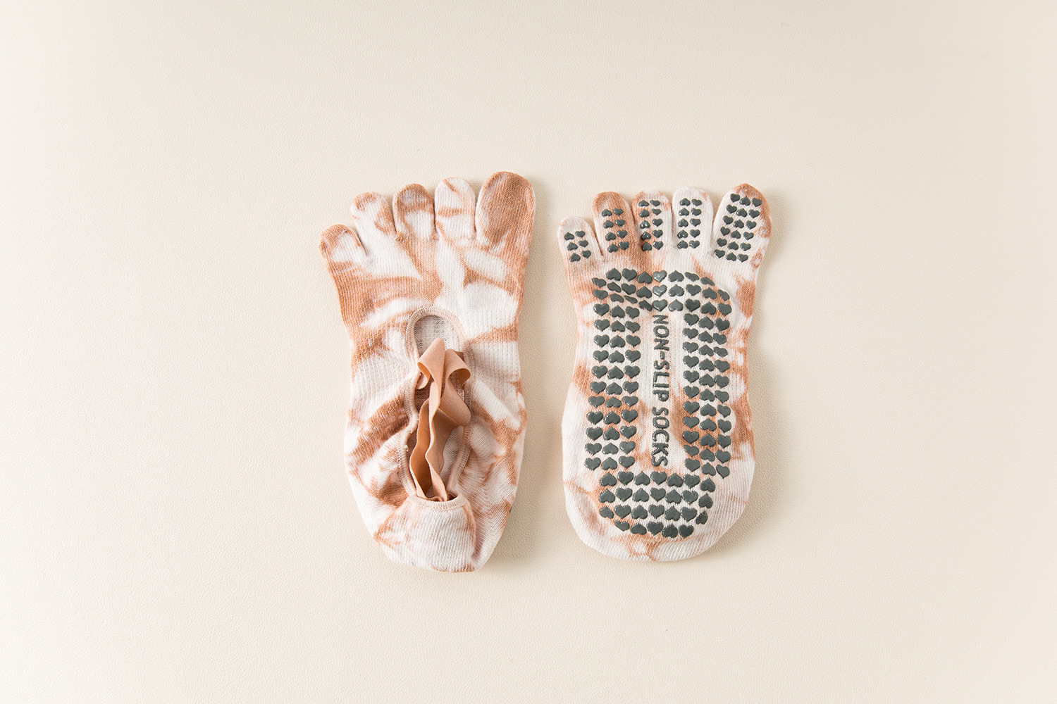 2 Pairs Pink Tie-Dye Non-Slip Yoga Socks for Women – Five-Toe Cotton Blend Socks for Pilates and Indoor Sports