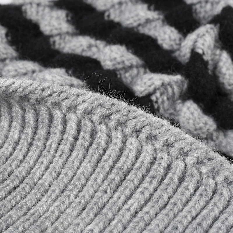 2-PCS Grey Stylish Two-Tone Pom-Pom Ear Warmer Knit Hat – Lined for Women