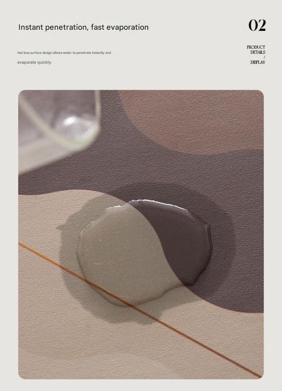 - Highly Absorbent: Made from diatom mud, this mat quickly absorbs water and prevents spills from spreading.