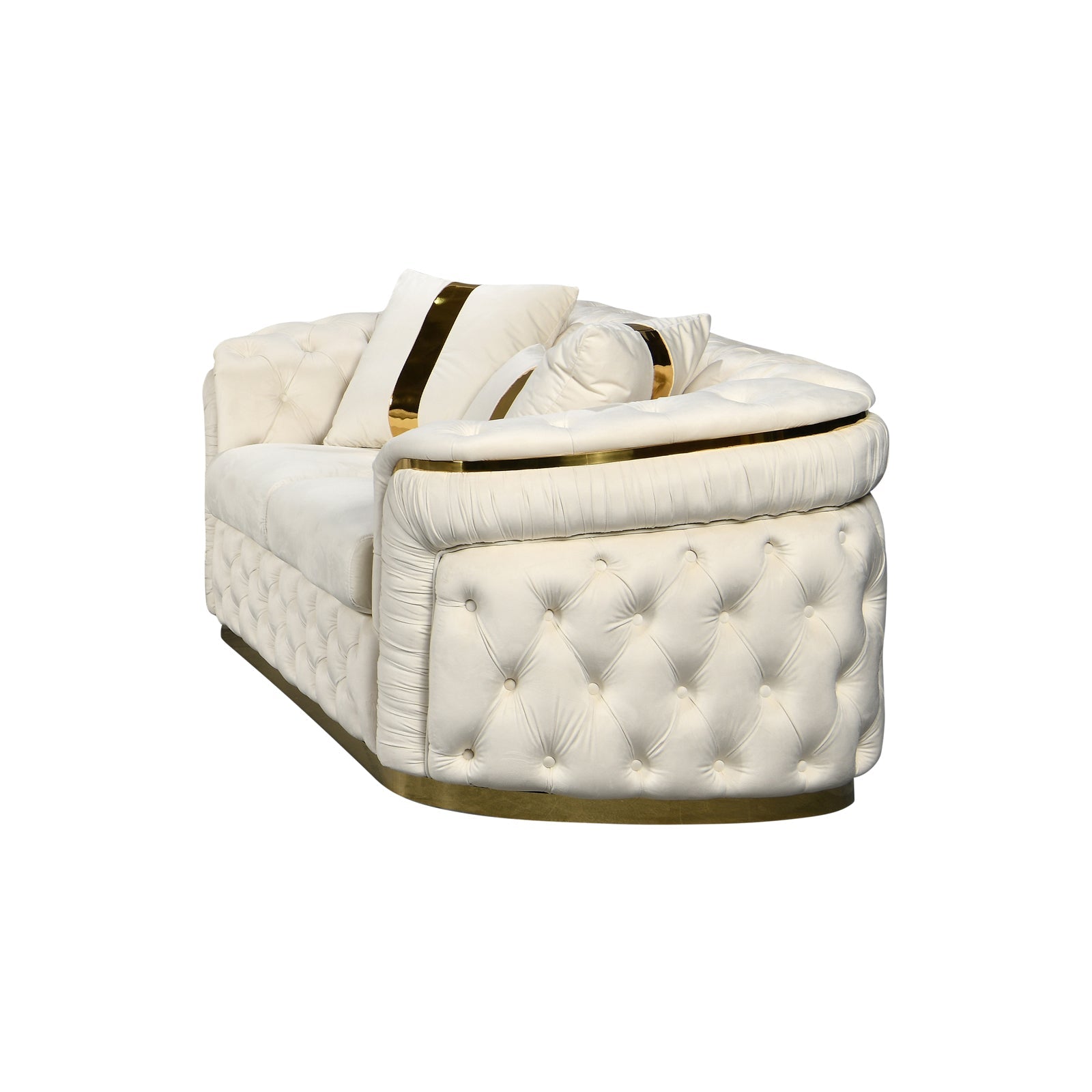 3 Seater Sofa Beige Velvet Fabric Solid Wood construction Gold Stainless Steel Trim