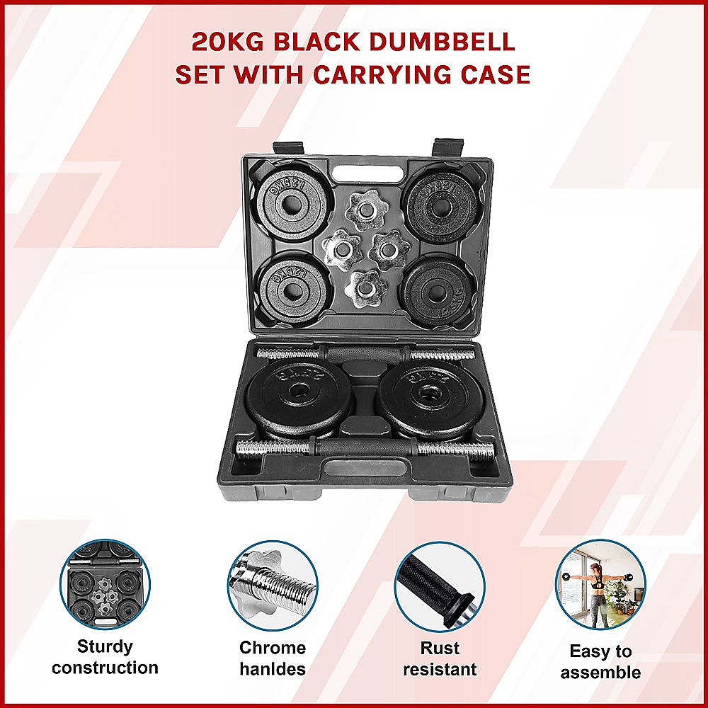 20kg Black Dumbbell Set with Carrying Case