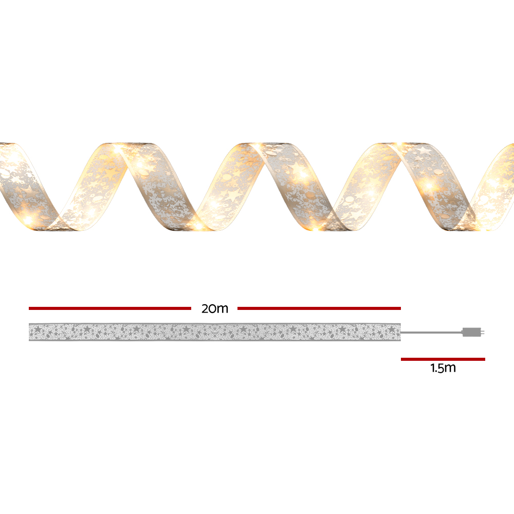 20M Christmas Lights Ribbon Fairy Light 200 LED Warm Jingle Jollys
