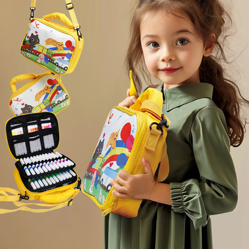 Unleash your child’s creativity anywhere with this fantastic Kids’ Double-Layer Marker Set featuring a convenient Carry Case! Designed with fun cartoon graphics and ultimate portability in mind, this kit makes carrying, storing, and using art supplies easy and tidy. It includes a vibrant selection of markers perfect for drawing and coloring, all neatly organized within the dedicated case.