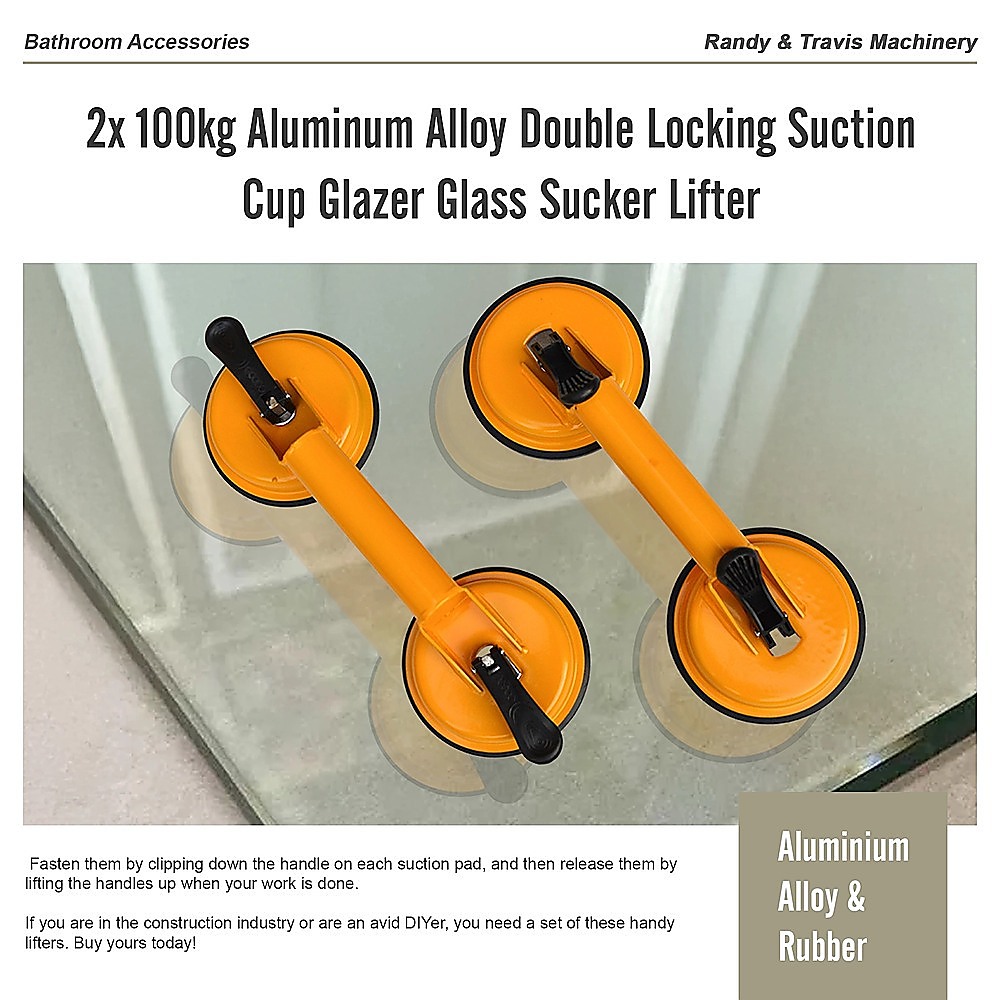 2x 100kg Aluminum Alloy Double Locking Suction Cup Glazer Glass Sucker Lifter