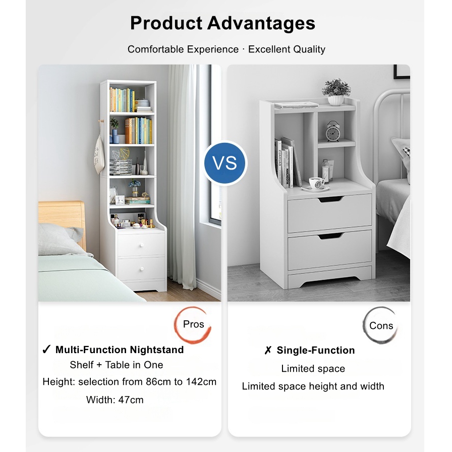 - 2 × Modern minimalist multi-functional bookcase bedside table (requires assembly)