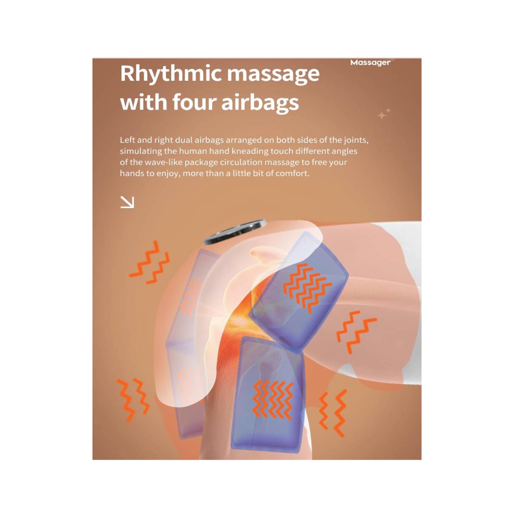 • Triple Heating Hot Compress: Immerse yourself in the warmth of our knee massager, featuring three levels of heating hot compression. This therapeutic heat penetrates deep promoting a sense of calm. Whether it’s your kneesor elbows, find relief wherever you need it most.