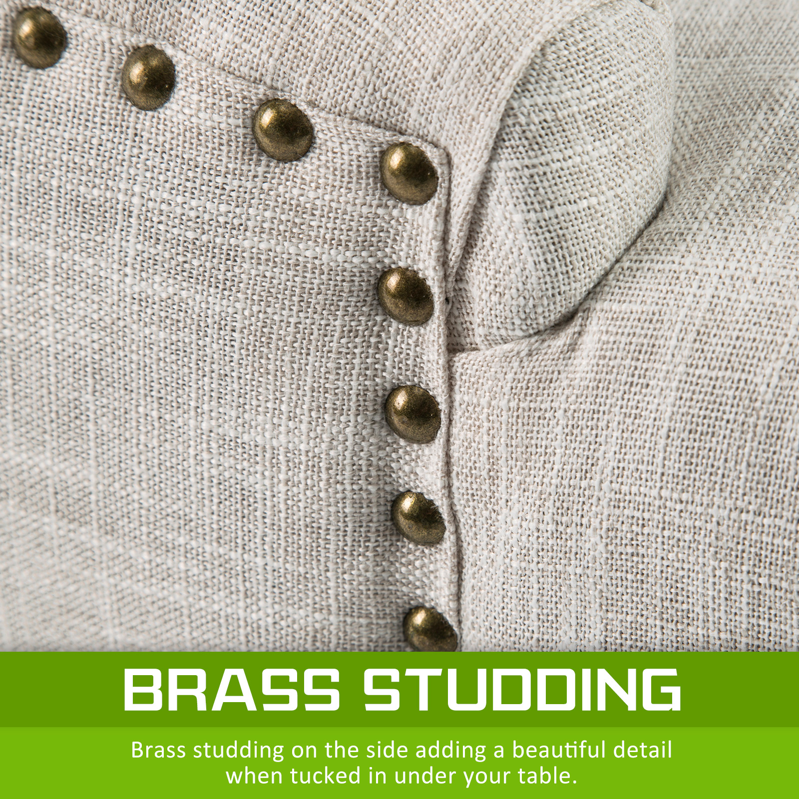 Upholstery Fabric: High-quality linen fabric with brass studs