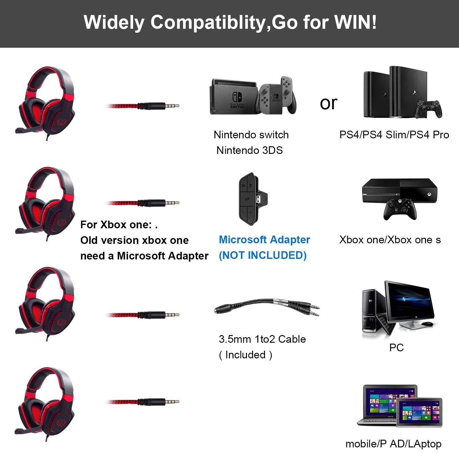 • 1 x 3.5Mm Noise-Canceling Gaming Headset With Retractable Mic 2M Cable