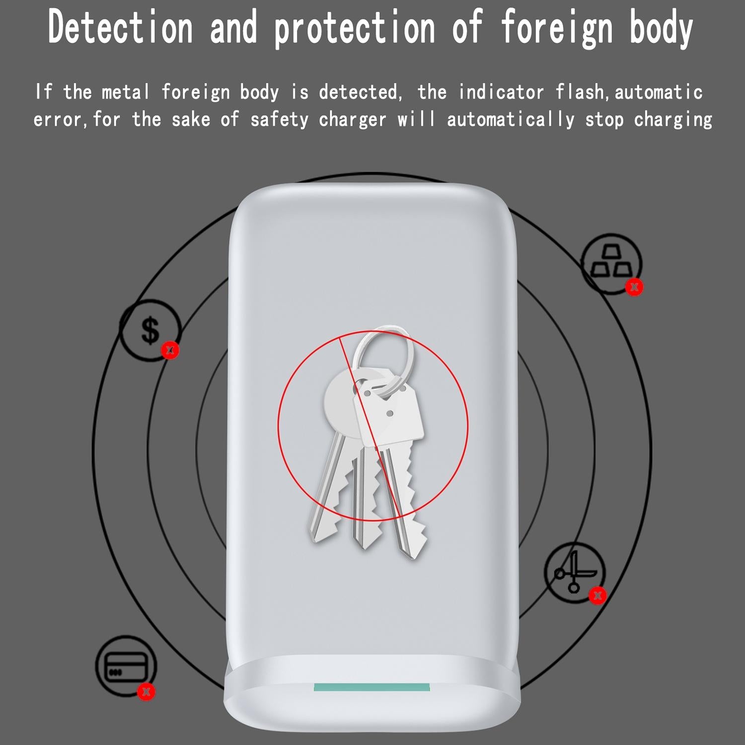 • Built-in protection measures to prevent overcharging, overcurrent, overvoltage, temperature control, and foreign body detection