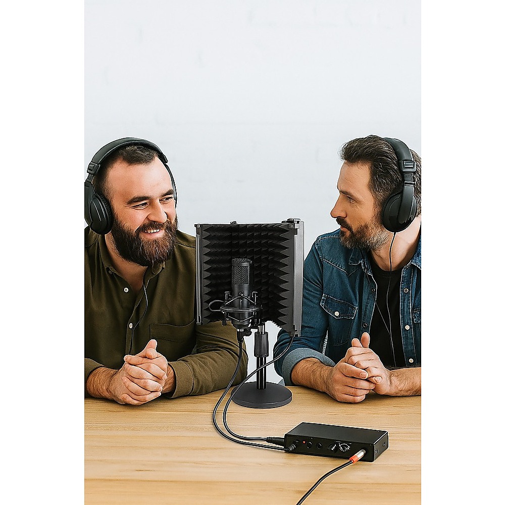 Introducing our microphone isolation cover featuring three foldable panels, offering adjustable angles for your convenience.