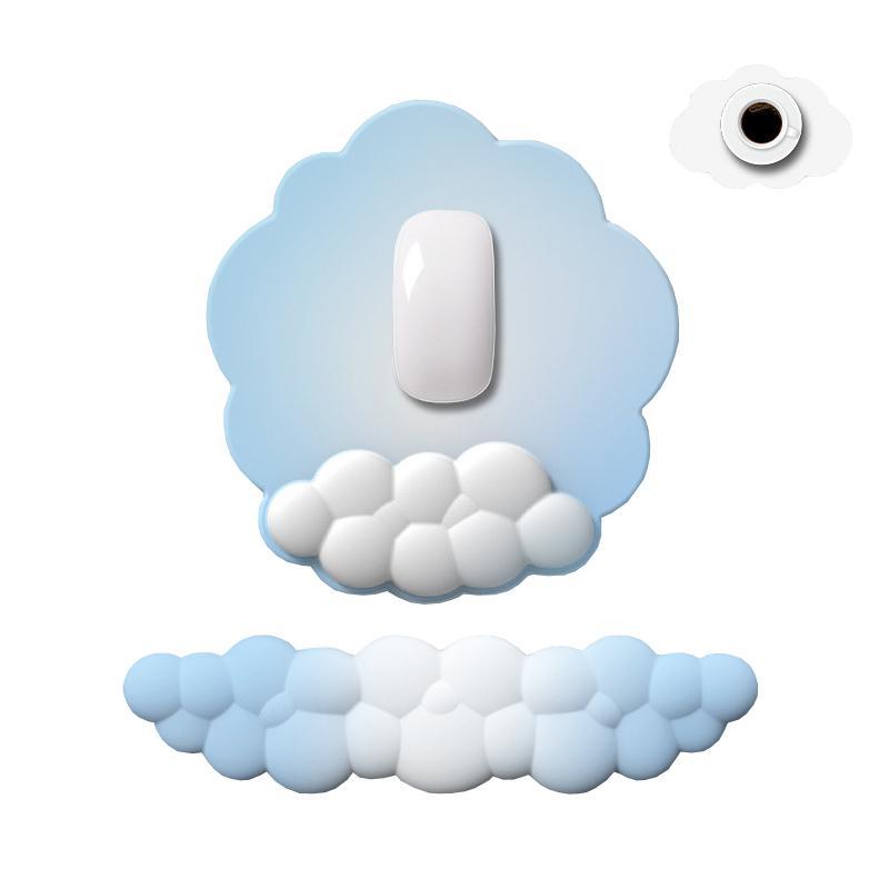• 1 x 3 Piece Cloudy Gradient Memory Foam Wrist Mouse Pad Set Blue+Gray