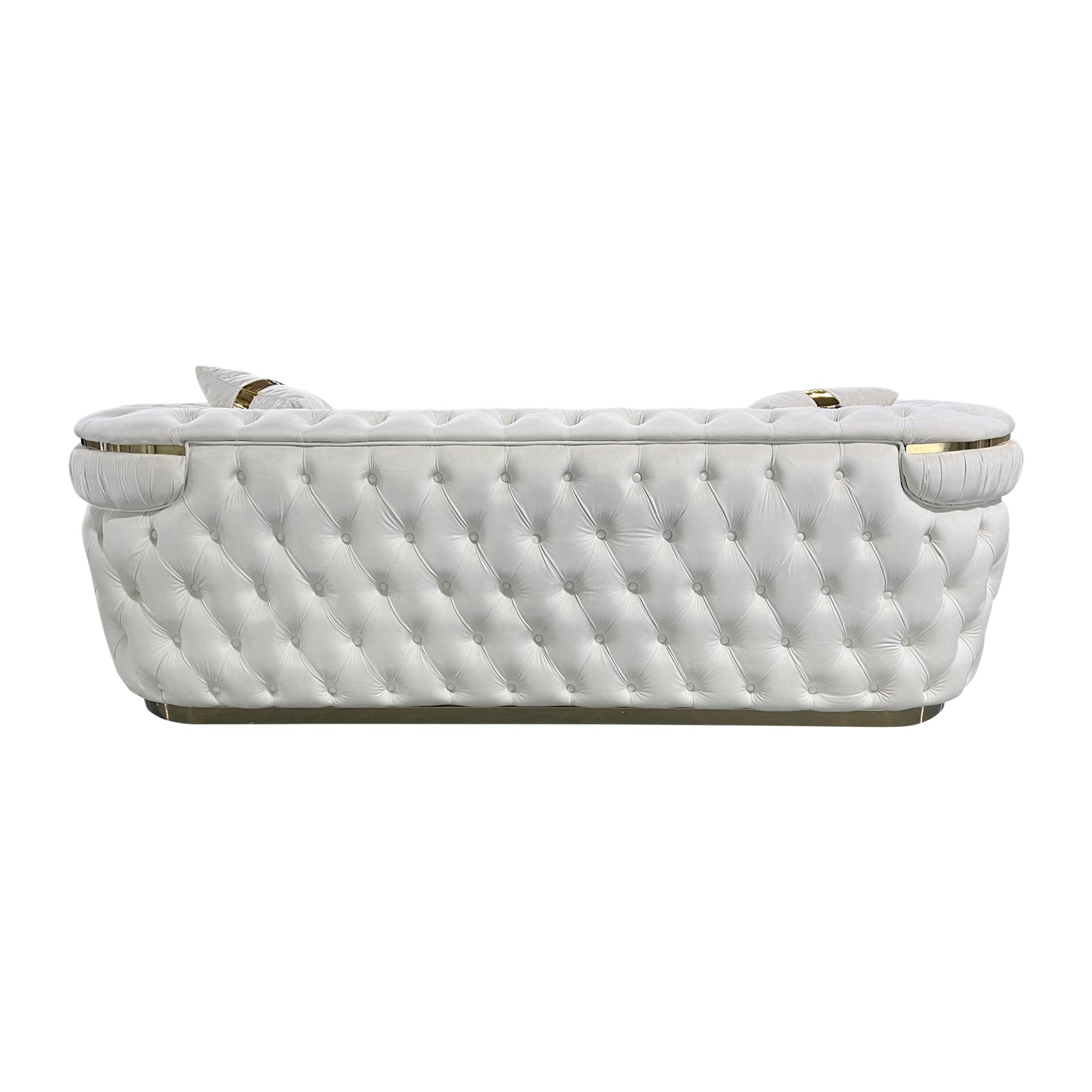 3 Seater Sofa Beige Velvet Fabric Solid Wood construction Gold Stainless Steel Trim