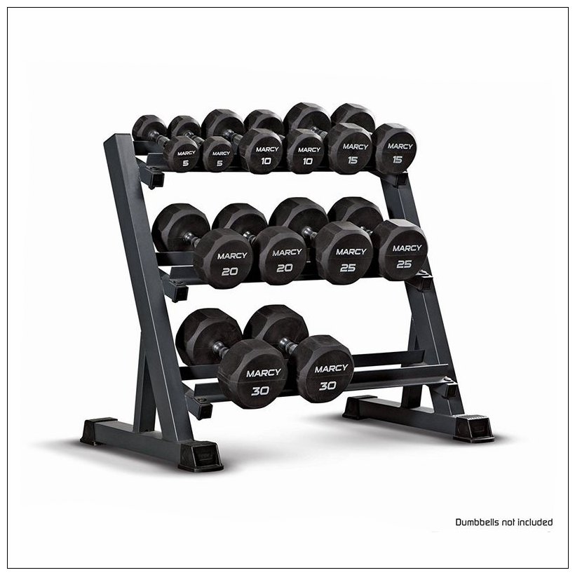 Store your dumbbells in a designated space that you can easily access while keeping things organized in your home gym! This rack stand features a 3-tiered storage space designed to accommodate dumbbells of all sizes.