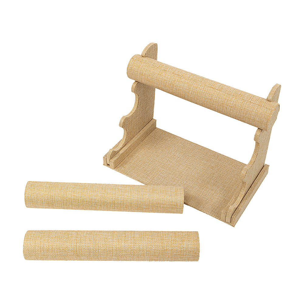 The natural linen fabric provides a beautiful contrast to your jewelry items, enhancing their visual appeal. Ideal for trade shows and events, this display rack is lightweight and easy to transport. With 3 tiers, it offers ample space to display bracelets, necklaces, and other jewelry items. The matte finish adds a sophisticated look.