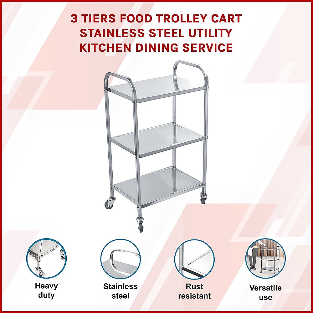 3 Tiers Food Trolley Cart Stainless Steel Utility Kitchen Dining Service