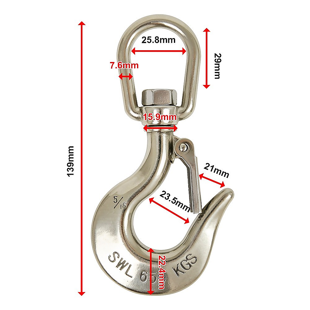 304 Stainless Steel Swivel Lift Clevis Chain Crane Hook with Safety Lock 650kg