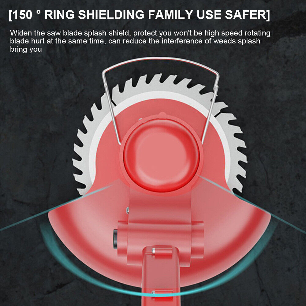 THREE TYPES OF BLADES: The cordless weed wacker with three different types of blades can help you with all kinds of complex jobs. Plastic blades are suitable for trimming newly grown grass, flat steel blades are suitable for cutting lawns, twigs and vines, and circular saw blades are suitable for cutting branches and shrubs.