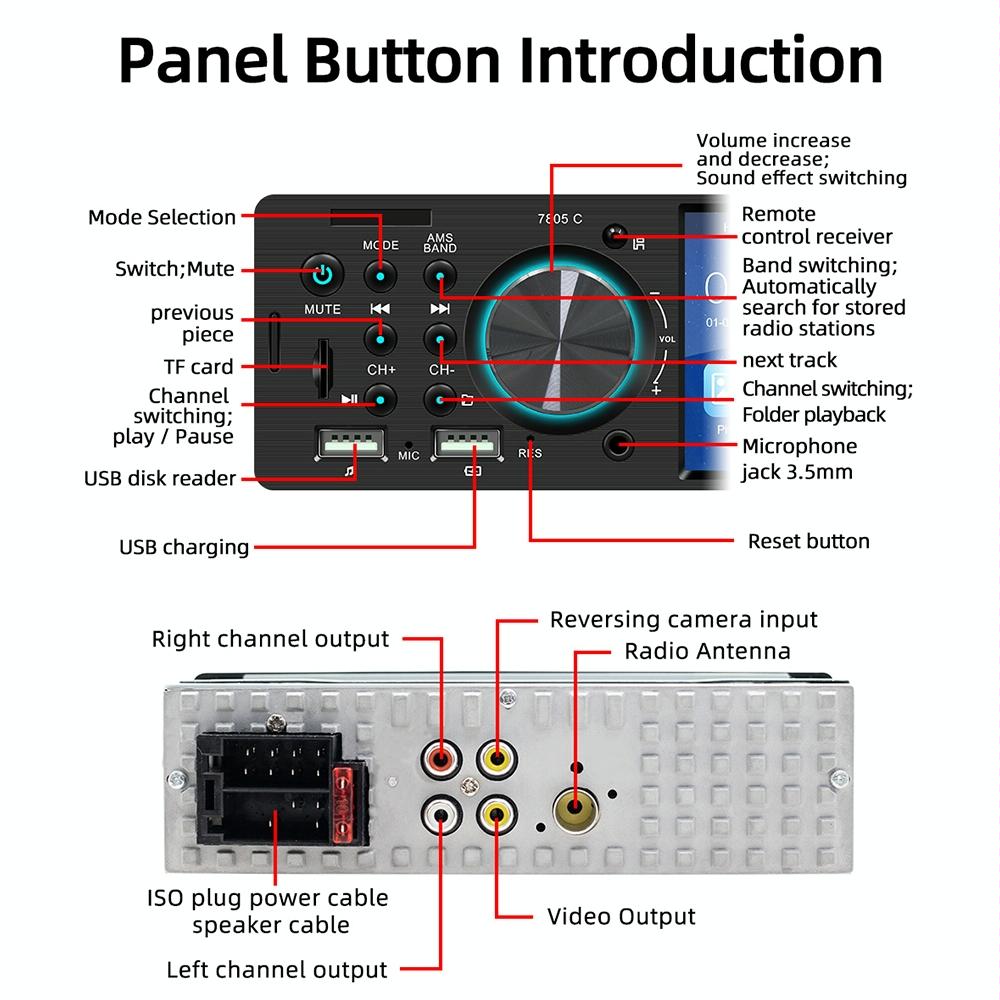 4.1 Inch Touch Screen Car Mp5 Player Fm & Bluetooth Tf Card Remote Control