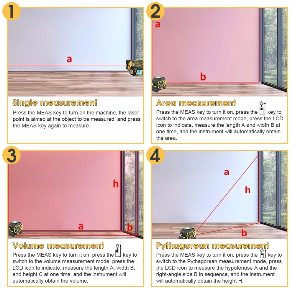 40m Laser Measure, Cross-line Laser Level, 5m Tape Measure Yellow