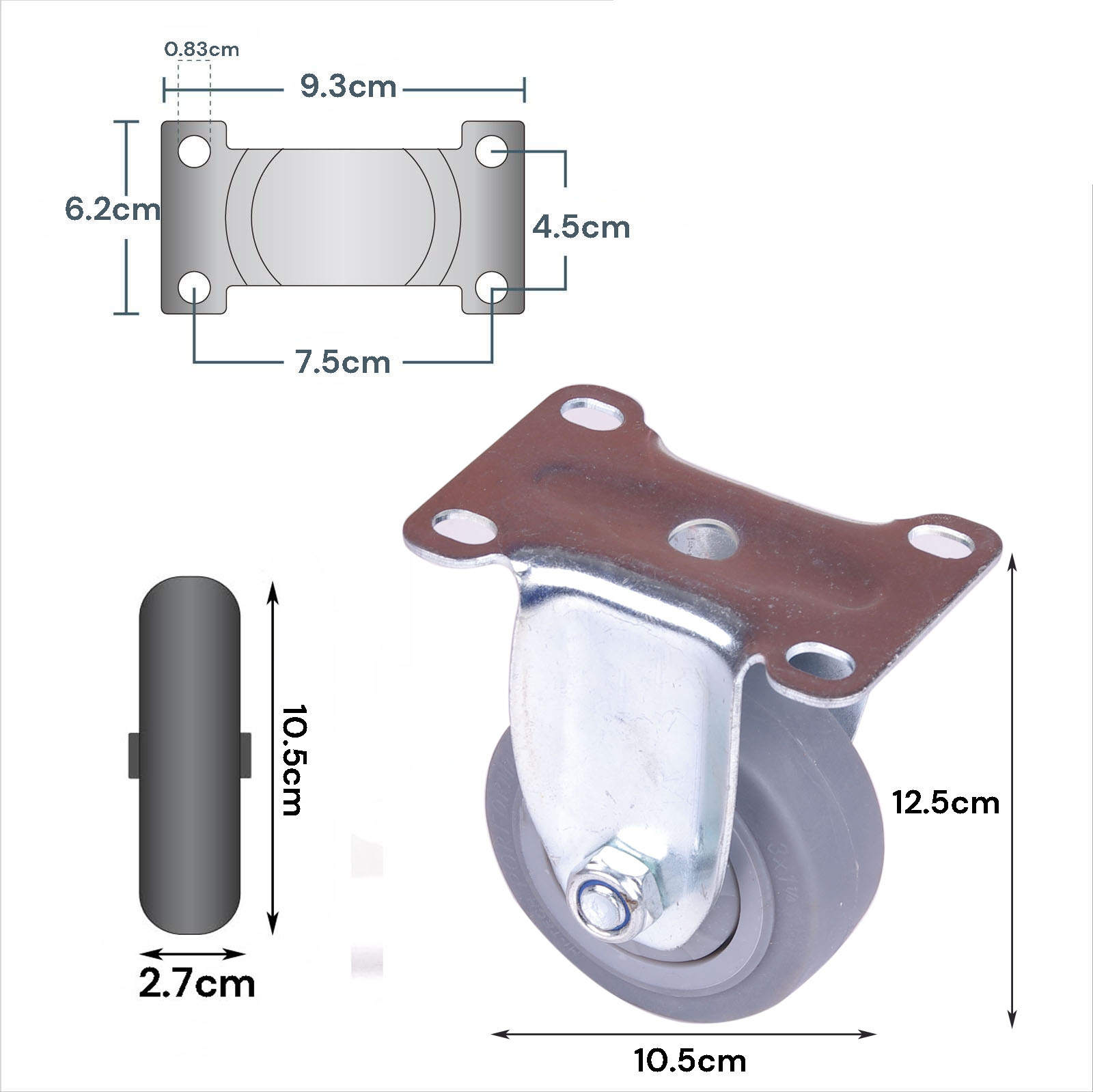 4 inch fixed caster wheel: 12.5cm x 6.2cm x 9.3cm