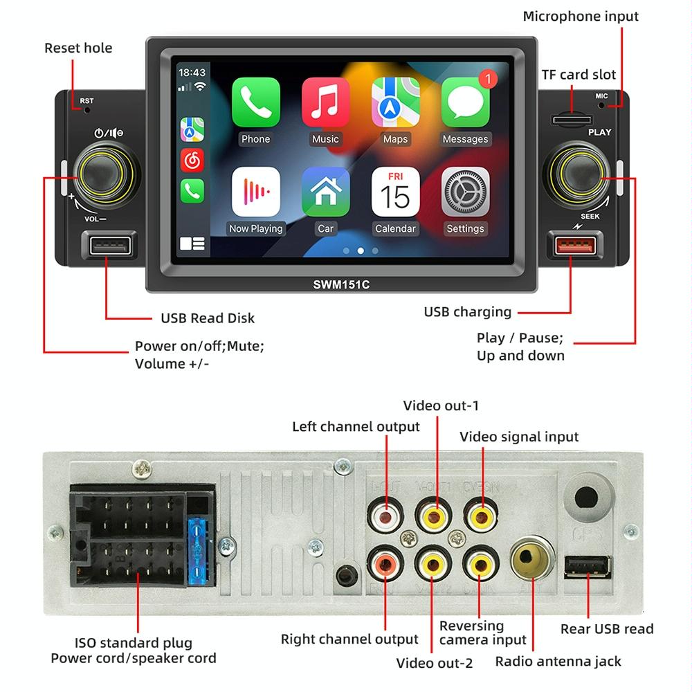 • 1 x 5 Inch Car Mp5 Inch Player With Carplay / Android Auto – Black
