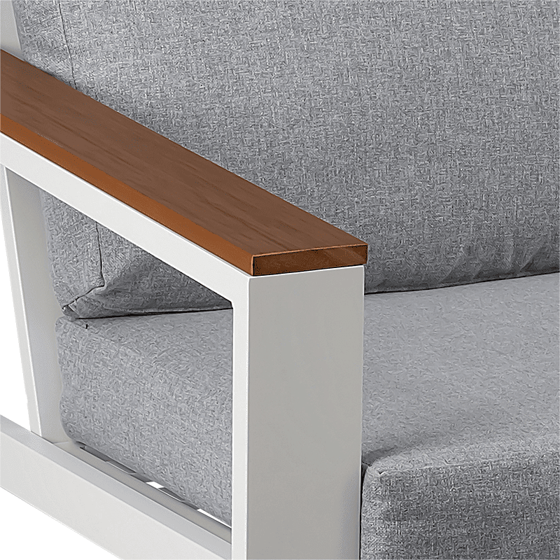 Aluminum slat top coffee table offer a place to set your coffee, snacks and books. Spacious seating can have a chat with your friends sitting on this sofa set.