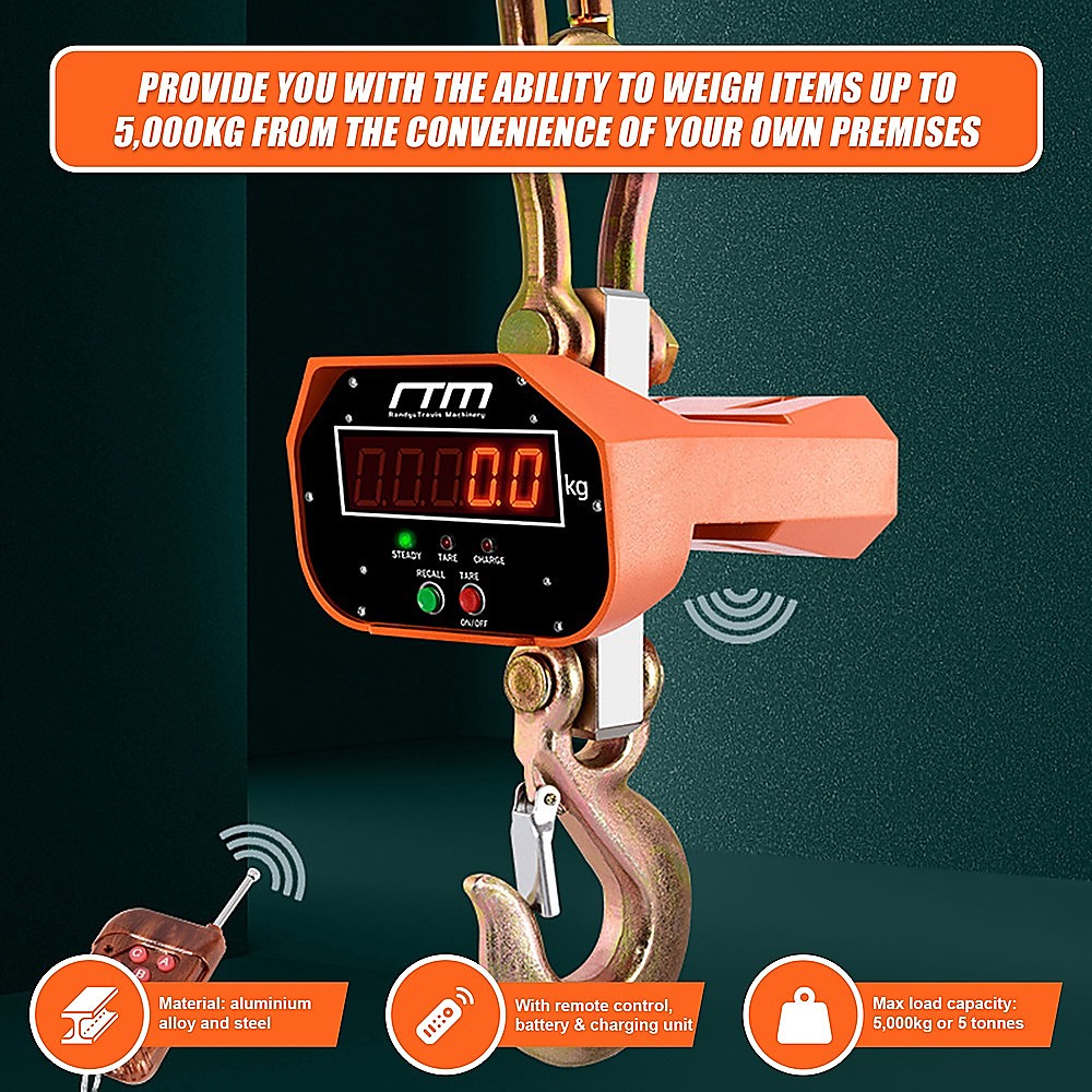 If you run a business, ensuring your send and receive items in the correct weight is essential. For this reason, a reliable electronic crane scale is beneficial for businesses. The Randy and Travis Machinery 5000kg Electronic Crane Scales provide you with the ability to weigh items up to 5,000 KG from the convenience of your own premises. Weigh shipments and stock with ease with the Randy and Travis Machinery 5000kg Electronic Crane Scales.