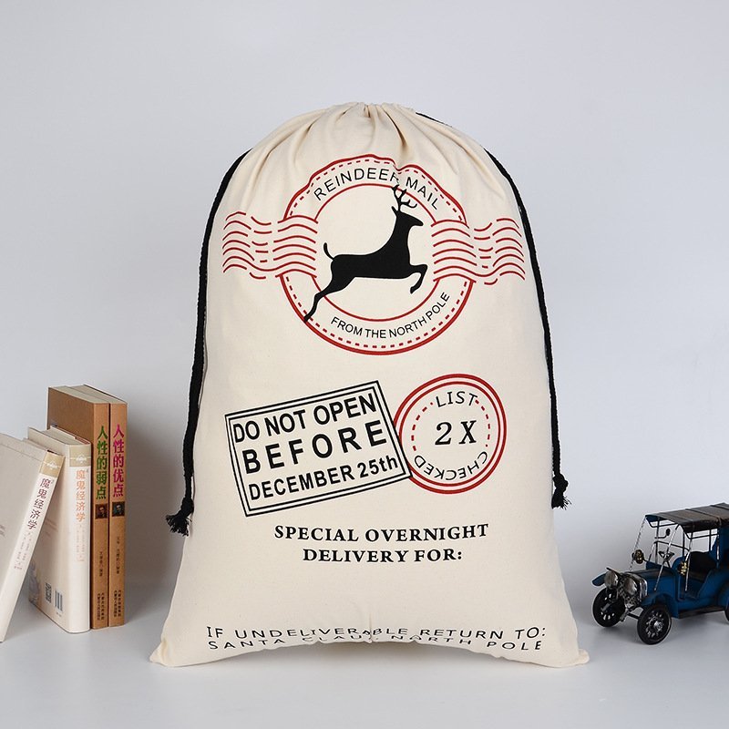 50x70cm Canvas Hessian Christmas Santa Sack Xmas Stocking Reindeer Kids Gift Bag, Cream – Reindeer Mail