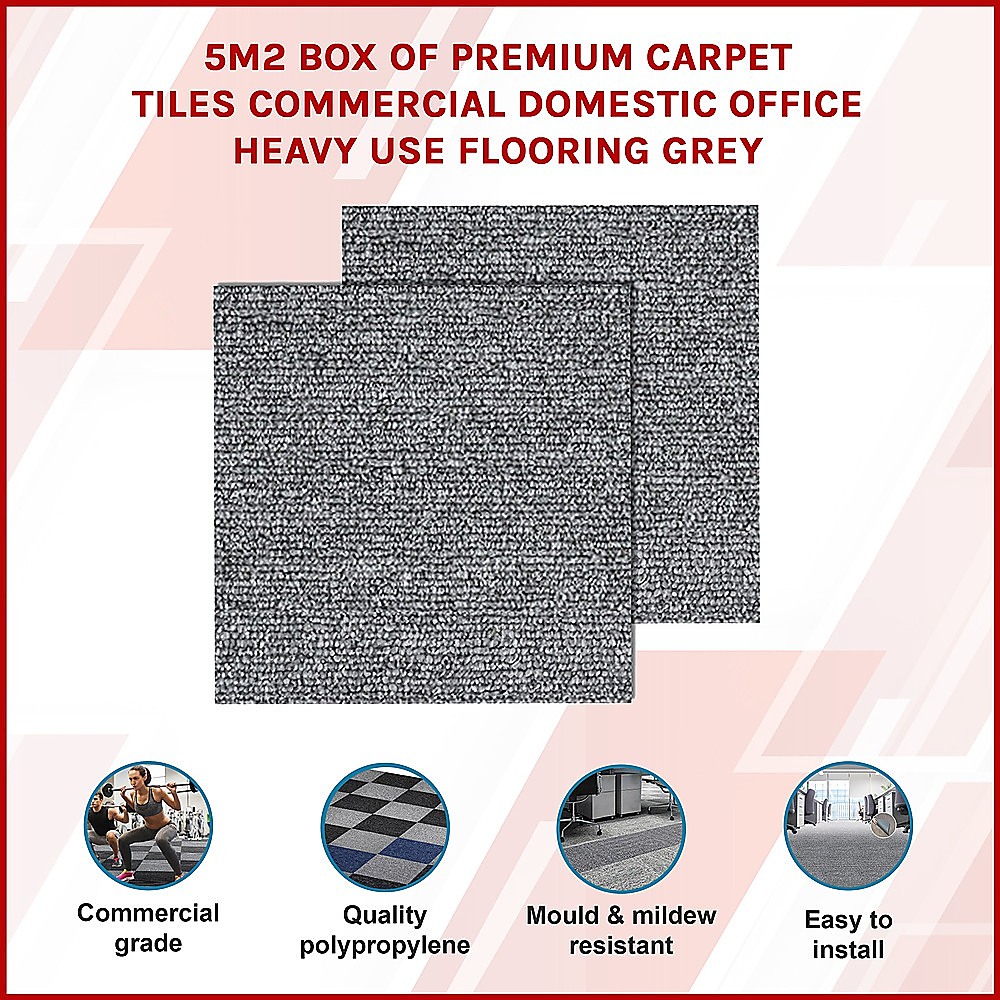 5m2 Box of Premium Carpet Tiles Commercial Domestic Office Heavy Use Flooring Grey