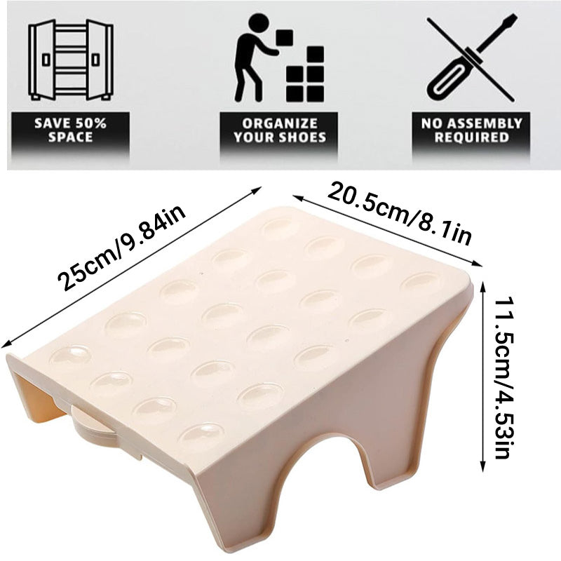 This set of double-layer shoe organisers offers a smart and compact storage solution for neatly arranging footwear in limited spaces. Designed with a vertical stacking structure, it helps maximise storage in wardrobes, cabinets, or closets. The non-slip surface and elevated base ensure shoes remain stable, while the built-in handle allows for easy repositioning. No installation or tools required—ready to use straight out of the box.