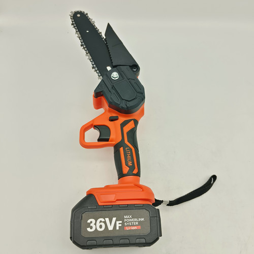 SAFE AND RELIABLE – 3 security measures to ensure that the mini chainsaw has reliable safety: Switch lock to prevent accidental activation to protect your family.Baffles prevent debris splash.