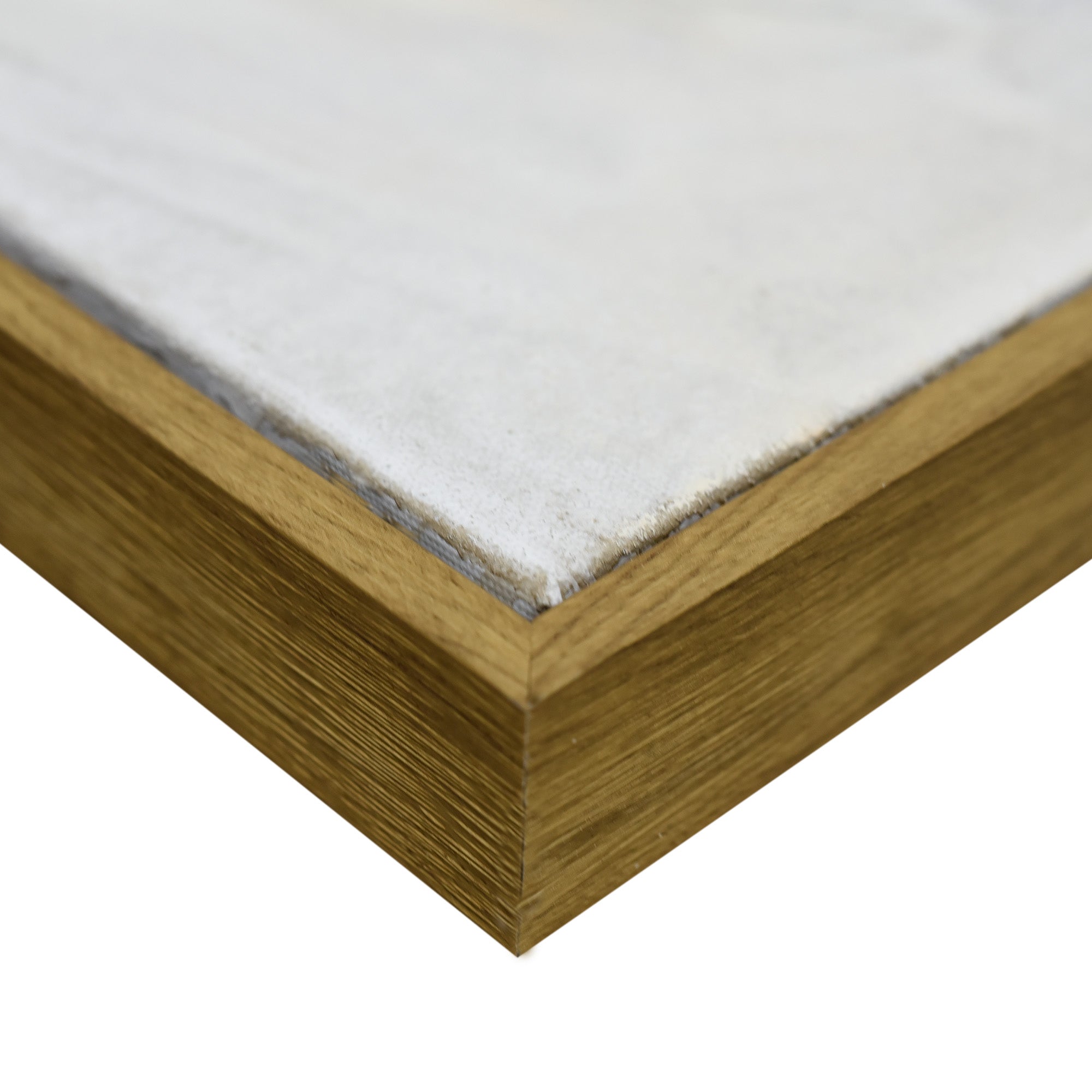 Stretched and gallery wrapped around a wooden stretcher and finished with a floating frame. There is a gap between the frame and print, which creates the floating effect and literally makes the canvas print stand out even more.