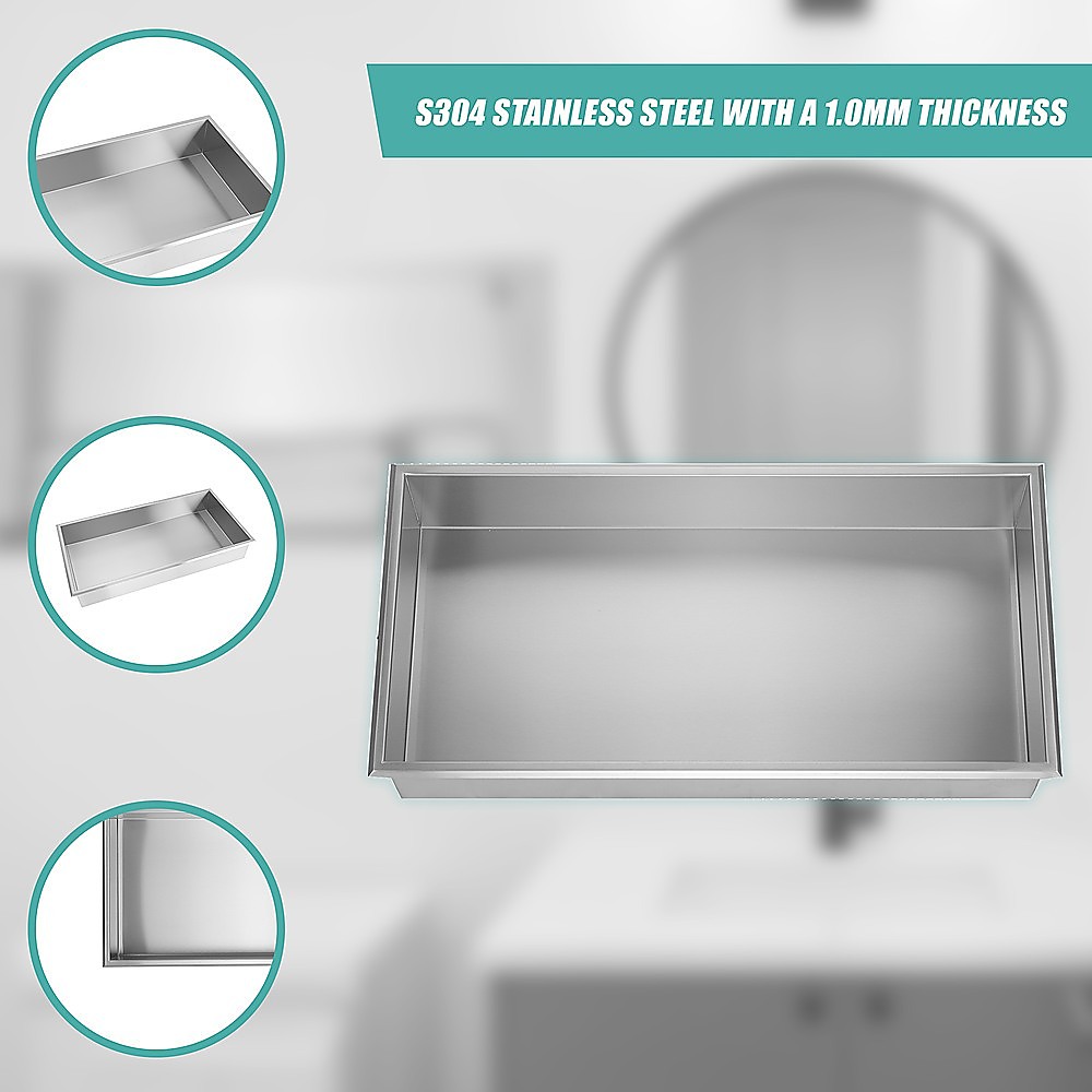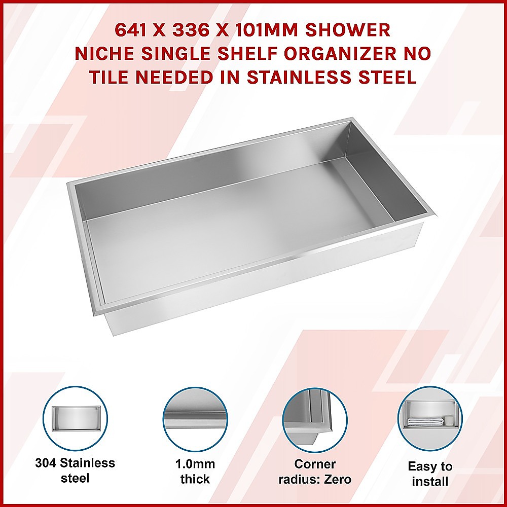 641 x 336 x 101mm Shower Niche Single Shelf Organizer No Tile Needed in Stainless Steel